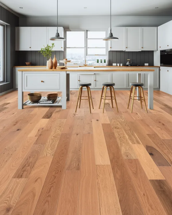 Wear layer: 3 mm Species: White Oak Width: 5.400 +/-.003 Shortest length: 15″ Longest length: 86.5″ Average length: 36″ to 40″ Total finished thickness: .472 +/-.005 Gloss: 7% +/- .02 Finish: Aluminum Oxide Surface: Smooth Grade: Mill Run Warranty: Lifetime Finish